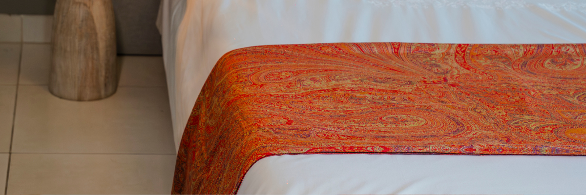 Artisanal Rustic Orange Paisley Camel Wool Throw Blanket – Handcrafted Luxury